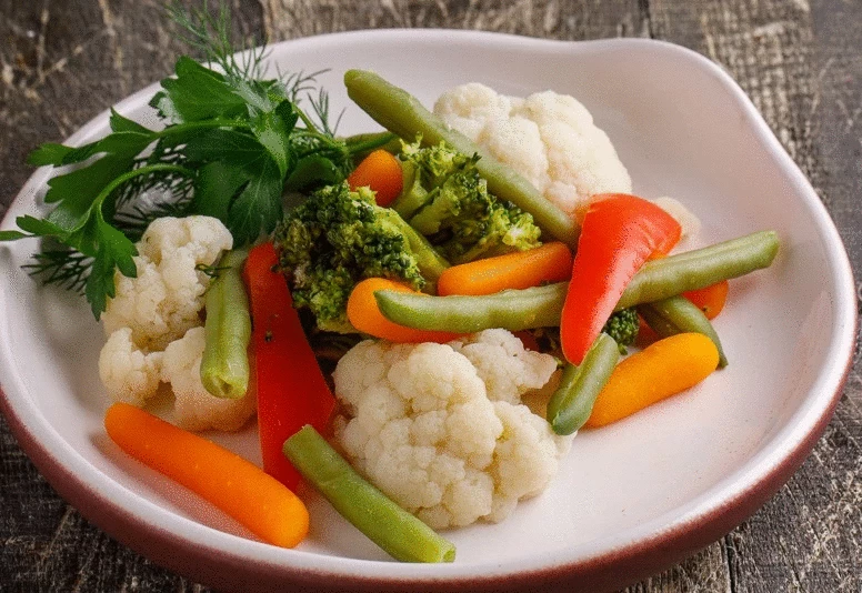 Цветная капуста, брокколи, морковь, стручковая фасоль приготовленные на пару